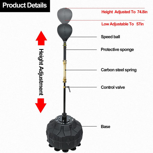 Boxing Fast Respond Speed Bar Heavy Duty Punching Equipment Adjustable Height from 57"~74.8" Boxing Skills Training Free Standing